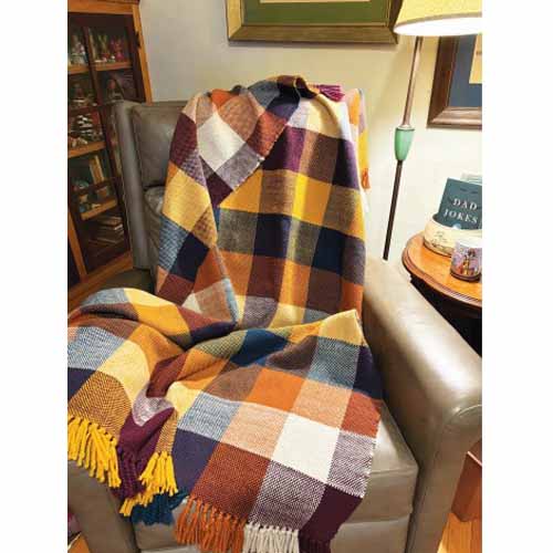 You'll be ready to snuggle up in your favorite chair with this light but warm blanket. It's big, too, because it is woven using a double weave technique where you weave two layers simultaneously that are joined at one side. When the fabric comes off the loom, it opens up like a book so it's double the width that it was on the loom!