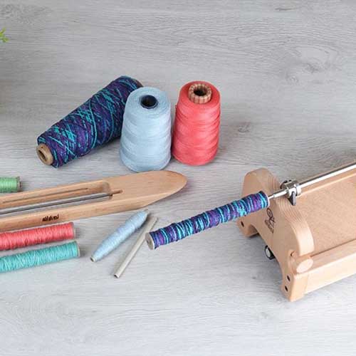 Add a layer of function to your Ashford e-Spinner 3! The quill spindle allows you to spin off the point, no walking wheel needed! This is a good way to spin textured yarns since there is no orifice to navigate. The quill tip also doubles as a weaving quill winder, so you can turn your e-Spinner 3 into an electric quill winder. The narrow shaft is tapered so paper quills and Ashford plastic bobbins can slide on snugly. (The quill winder does not work with the plastic bobbins from Schacht and Leclerc, or with Harrisville Designs' wooden bobbins.)
