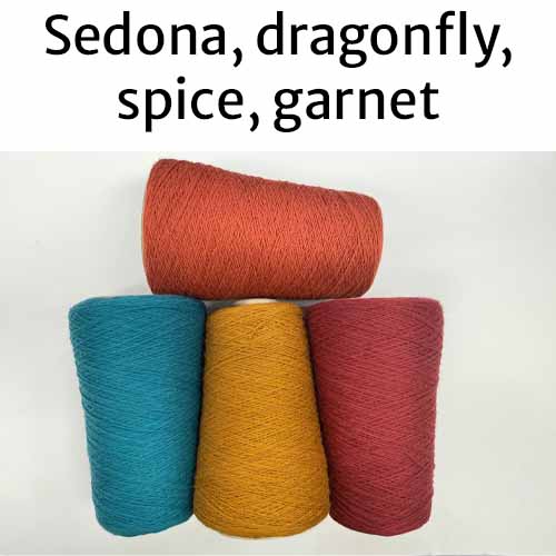 Our napkin set was woven using Ecology Strings in colors that aren't currently available. We've put together a new combination, shown in the detail box above. If you would like these colors, simply order the kit above. If you would like to choose your own colors, please see our Ecology Strings 10/2 page to view the options. Then return to this page, order the kit, and tell us your four color choices in the box above.