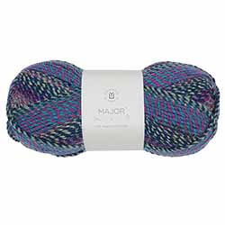 Major is a chunky weight, variegated yarn, that works up fast and is easy to care for. Perfect for quick baby blankets and afghans, but also great for sweaters, scarves, and other accessories. Major is a two-ply yarn with long color repeats making for fun striping. If you have been a Marble Chunky fan, Major is almost identical and makes a great substitute. Machine washable and dryable!