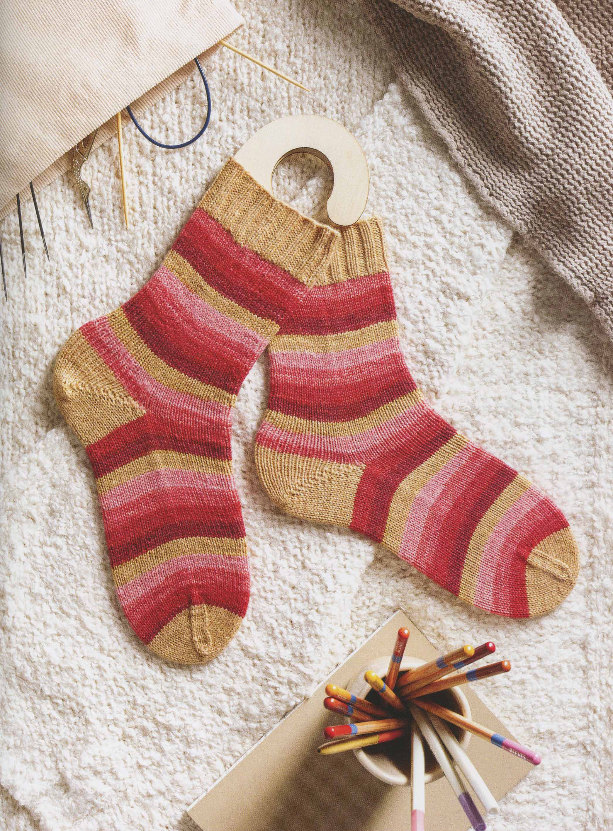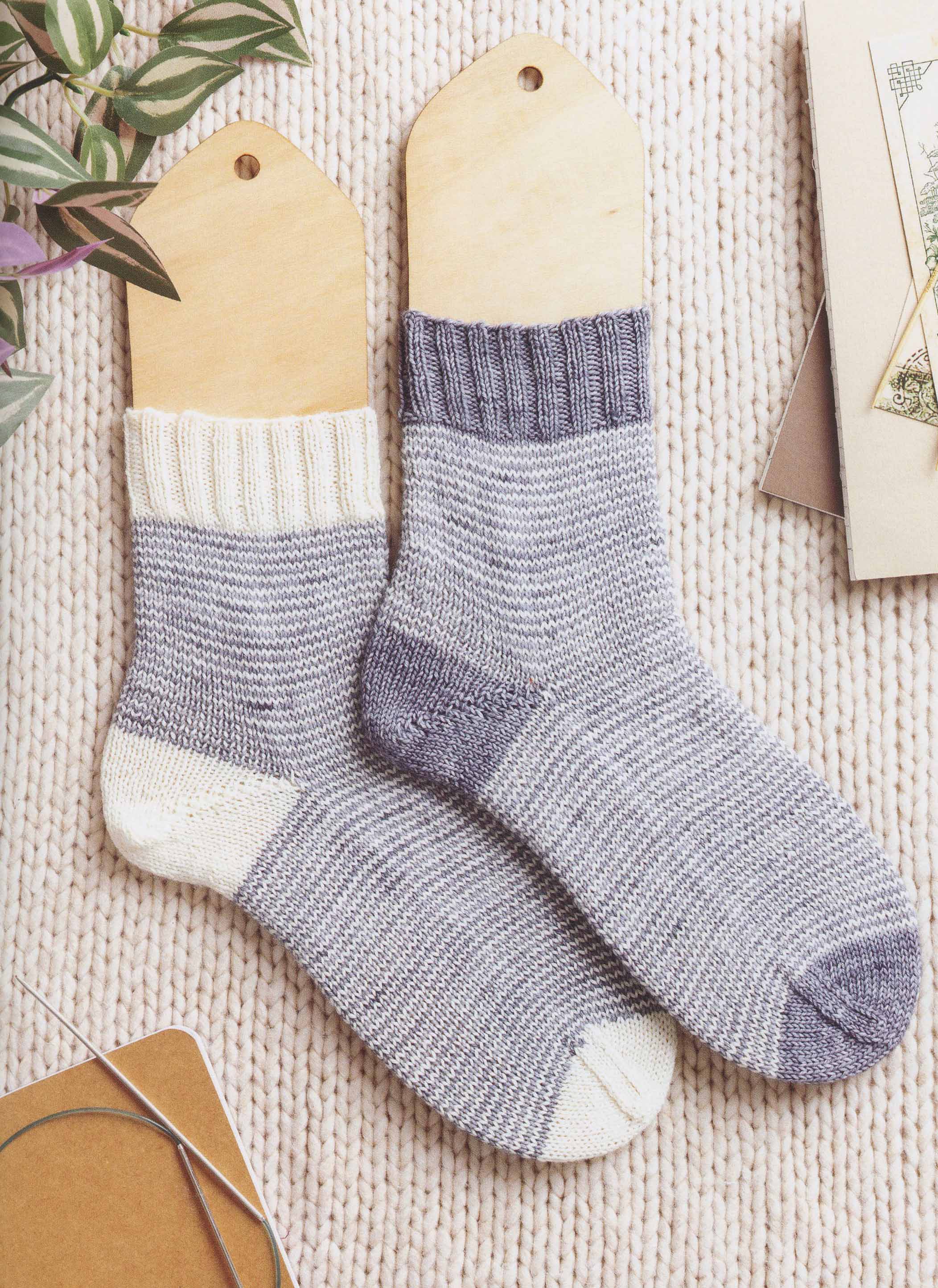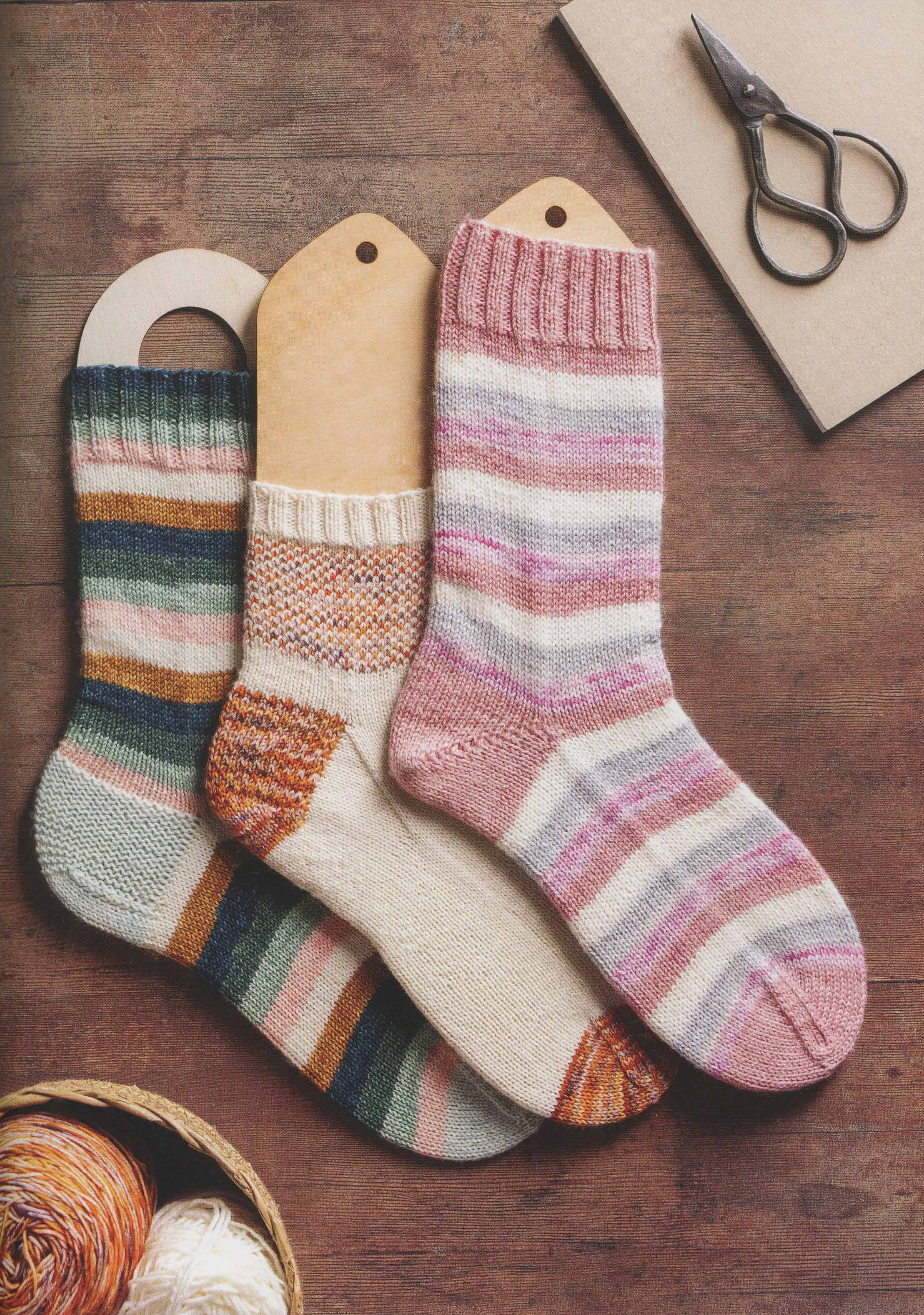 This is the ultimate sock book for beginners, and especially those that have been intimidated by the thought of knitting socks. This book explains the construction of hand knitted socks and offers many of the options available for different styles and techniques to use. Detailed descriptions and photographs give you step-by-step instructions on stitches and other processes of making socks. Included are 8 beginner-friendly patterns that you can try once you're ready to get started. So, grab your needles and this book and have no fear as you jump into your first pair of socks!