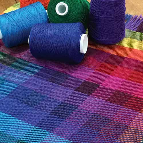 Everyone always asks us, “How do these colors work together?” So...we have made this kit aimed at exploring how colors weave together. It is made in 3/2 perle cotton. There are 18 colors used, threaded in 2" stripes and sett at 12 epi. To weave, you just repeat 2” stripes in the same color order of the warp. Each color intersects every other color, answering that question of how the colors work together. This color study is easy enough for the beginning weaver and useful for all textile artists. The finished blanket is 32” x 72” plus fringe.