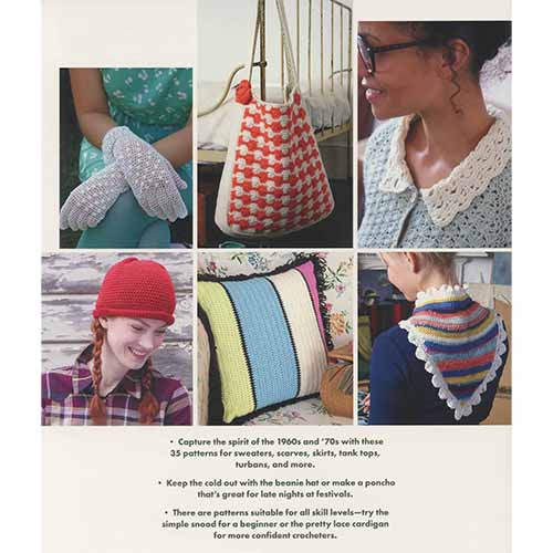 Retro Crochet captures the spirit of crochet from the 60's and 70's. Ponchos, bags, shag pillows, miniskirts, granny squares, and sundresses to name a few of the retro styles in the book. These vintage designs are nostalgic yet polished just right to fit in with today's fashion trends. The patterns range from easy to more difficult and include a how-to section on stitches and techniques. 35 patterns in all, including hats, scarves, sweaters, socks, shawls, and more!