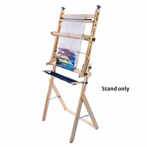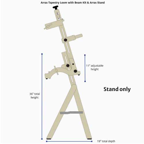 The Arras stand is a convenient accessory to your Arras loom adding comfort to your weaving experience and provides storage for your loom with minimal floor space. The height can be easily adjusted to suit your needs and accommodate the Arras loom with or without the Arras Beam Kit. The stand also allows you to add the Arras Treadle kit.