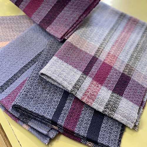 This project began simply as a color combination that we loved. We found the colors in 16/2 cottolin and the rest fell into place. The yarn is fine, sett at 30 epi and woven at 36-40 ppi, but easy twill threading and treadling sequences help hasten the progress. The warp is striped and there is plenty of yarn included to play around with different striping patterns in the weft or you can use a single color of weft for extra speed. And the result is a set of towels that are absorbent and lightweight enough to get into the inside of a juice glass. The kit makes up to 8 hemmed towels with finished dimensions of 13.5" x 20". They can be machine washed and dried.