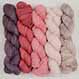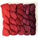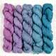Wonderland Cheshire Cat is a hand-dyed 100% Merino Wool yarn from Frabjous Fibers, dyed and spun here in the USA. Here it is packaged in a set of 5 mini skeins of coordinated colors. Some projects require color gradations so take advantage of these yarn packs! Each skein is 1 oz. and has 128 yards, making 5 oz. and 640 yards in a pack--ample amounts for scarves, hats, cowls, or mittens. . Their color names are a play on lines from Alice in Wonderland. Machine washable.